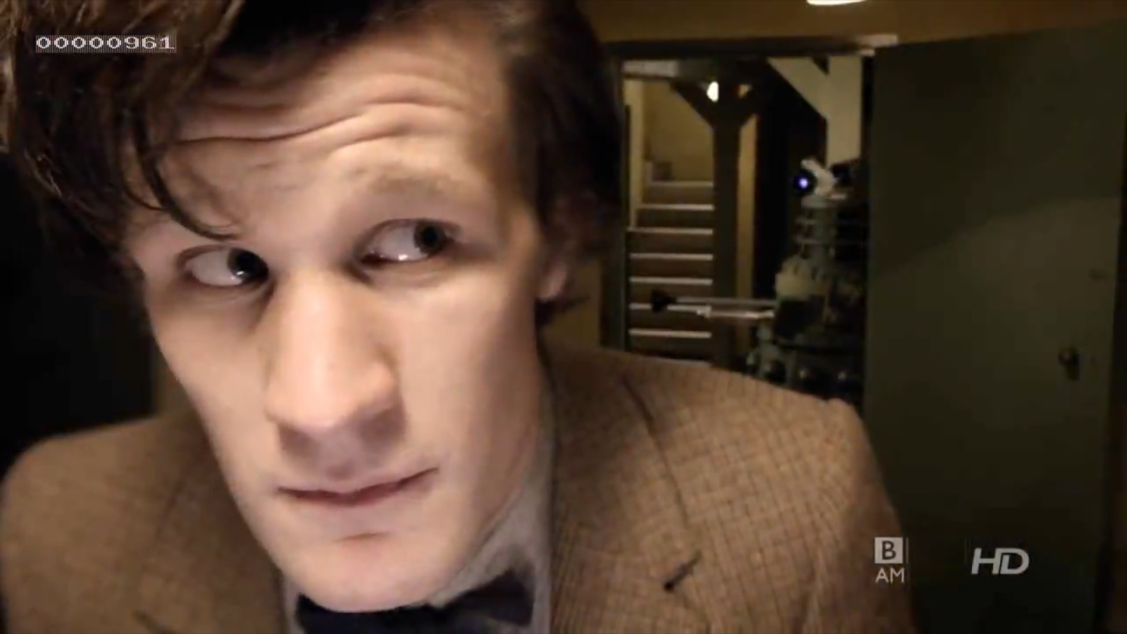 Don’t have time to screencap just at the moment, but my favourite shot in these trailers is the one with the Dalek appearing in the doorway over The Doctor’s shoulder. It’s such a simple act that just jumps out through the lovely direction and Matt Smith’s quite extraordinary face in the foreground. I get the feeling these new directors will be really pulling out all the stops to show what they can do on Doctor Who, and that’s one of the most exciting things about this new series.